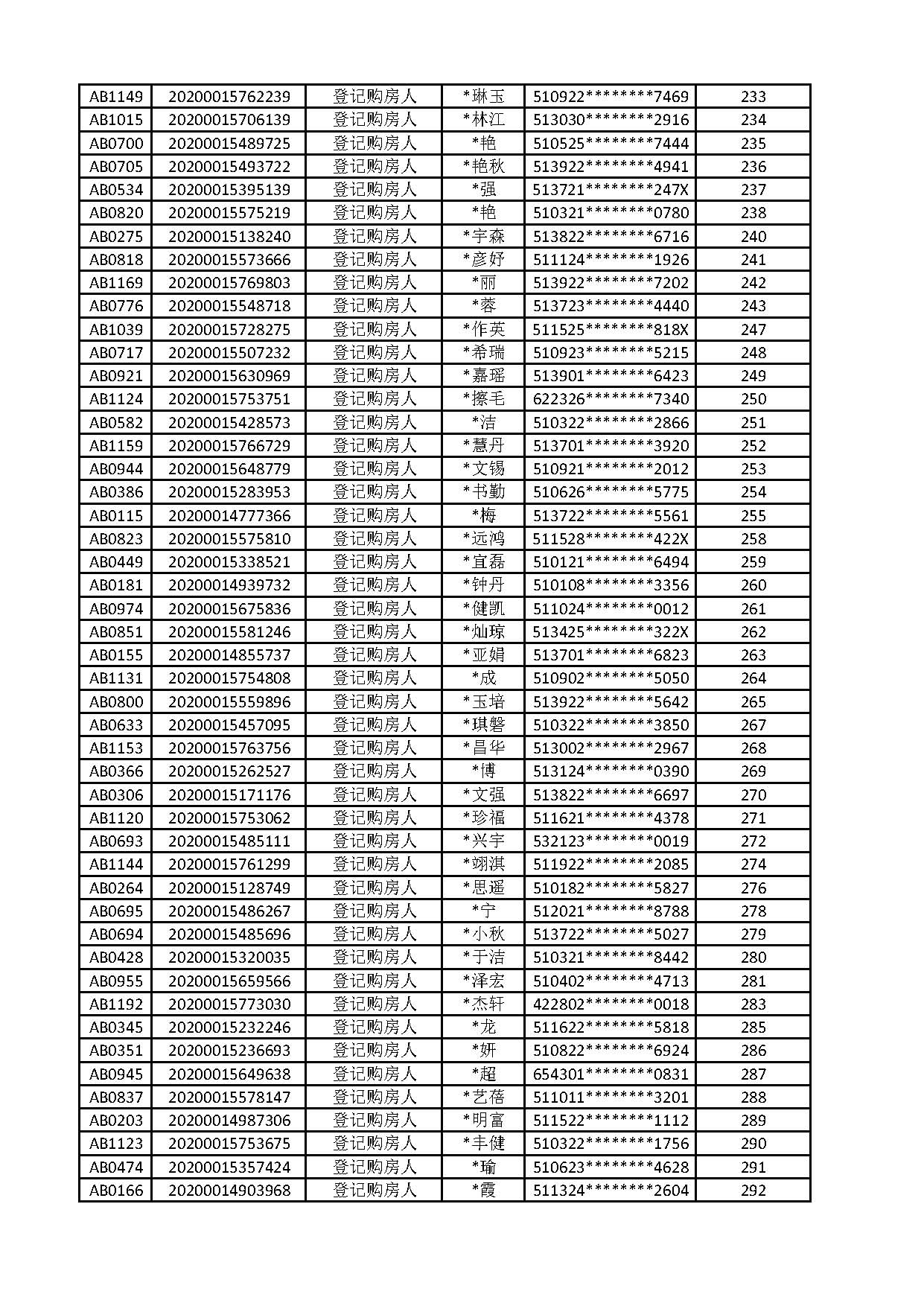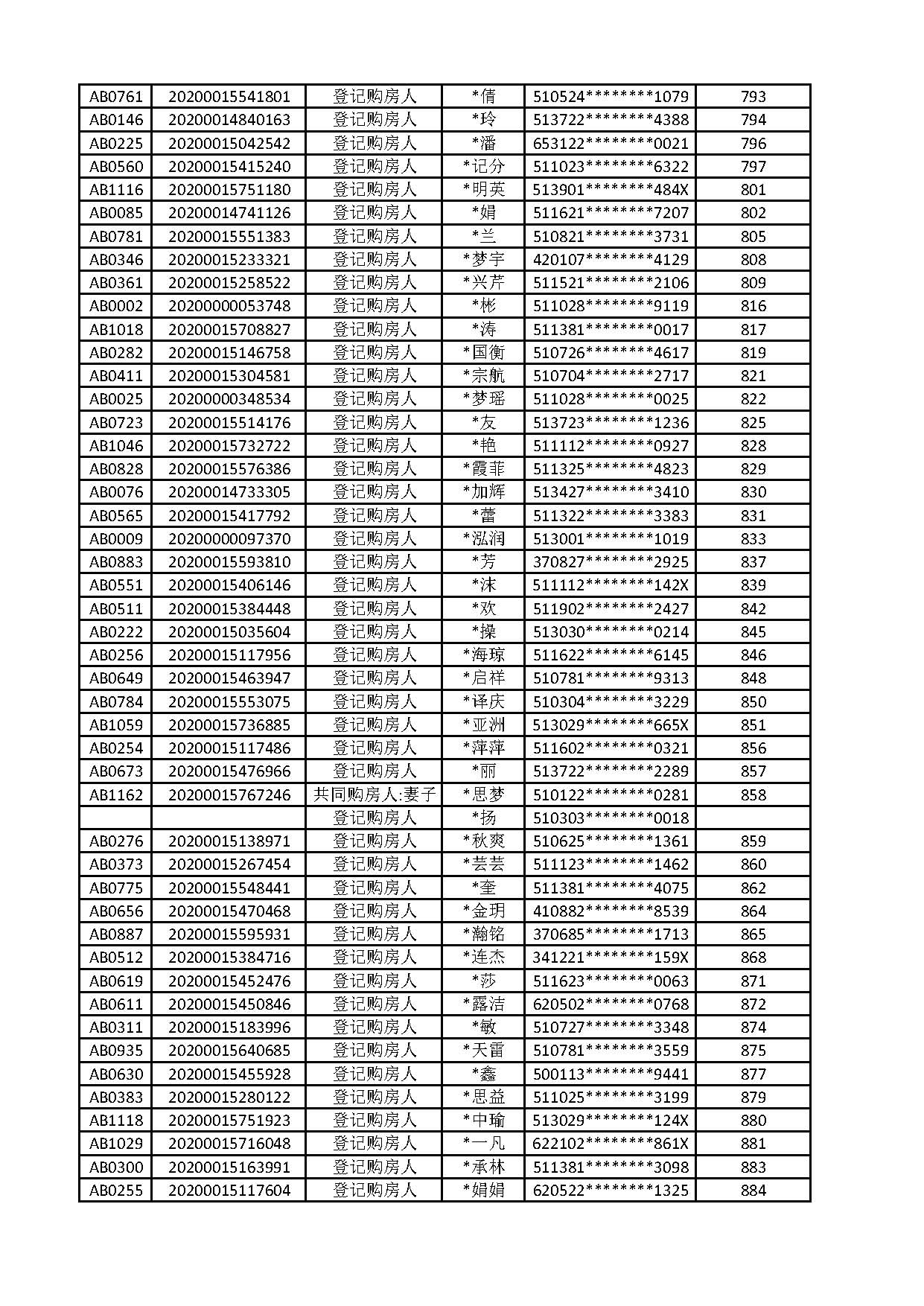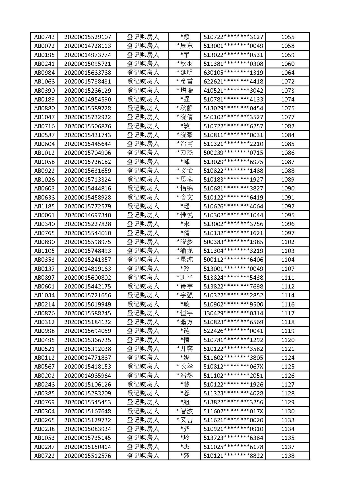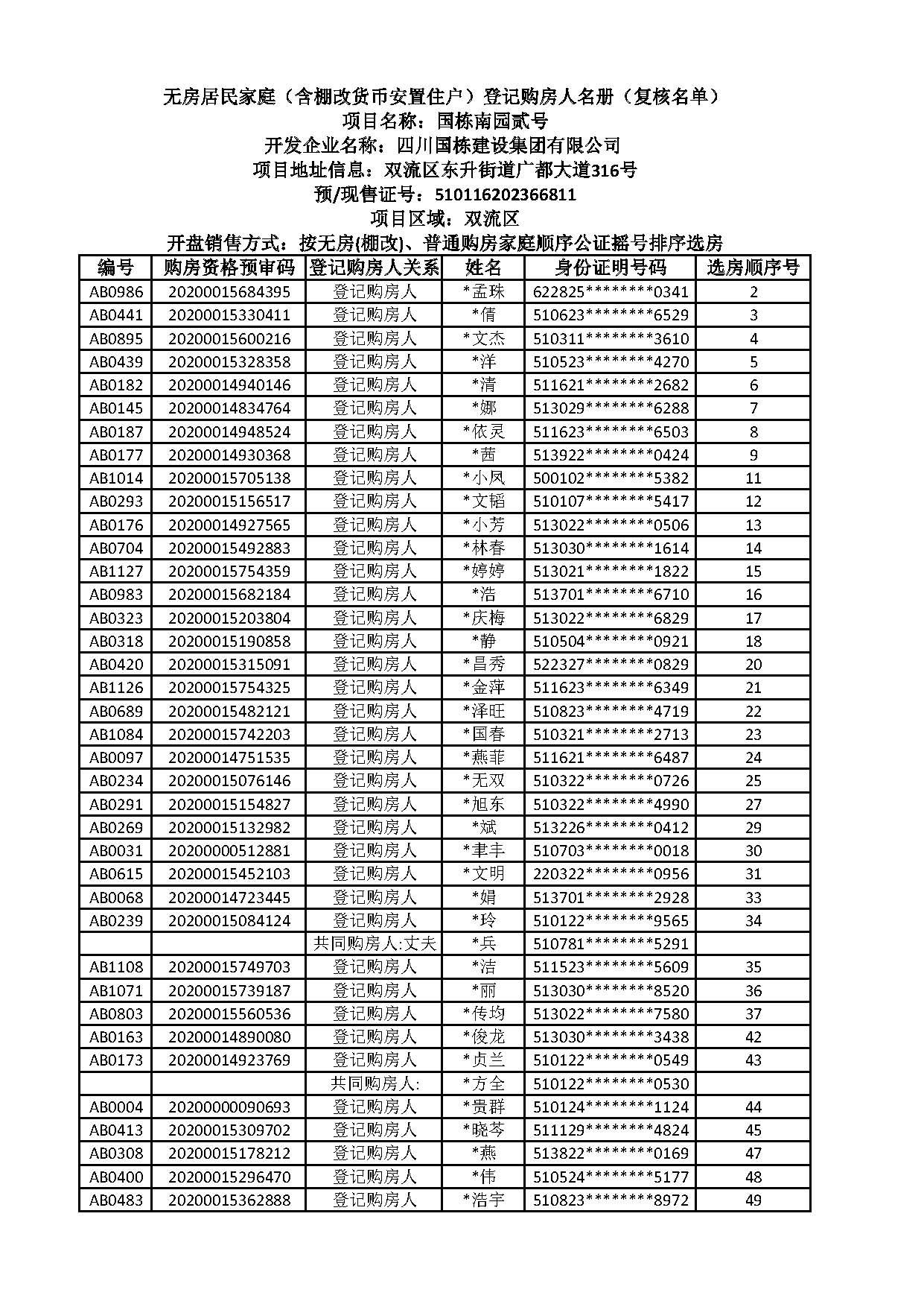 國棟南園貳號 無房居民家庭(含棚改貨幣安置住戶)登記購房人名冊(復核名單)