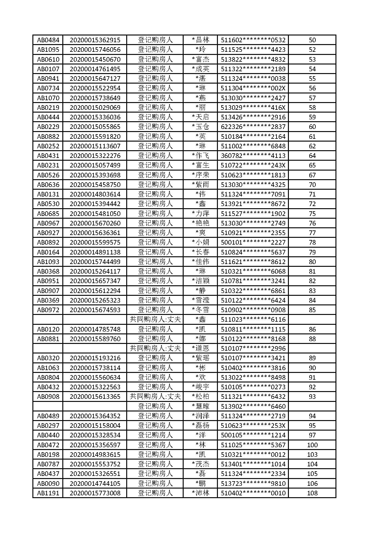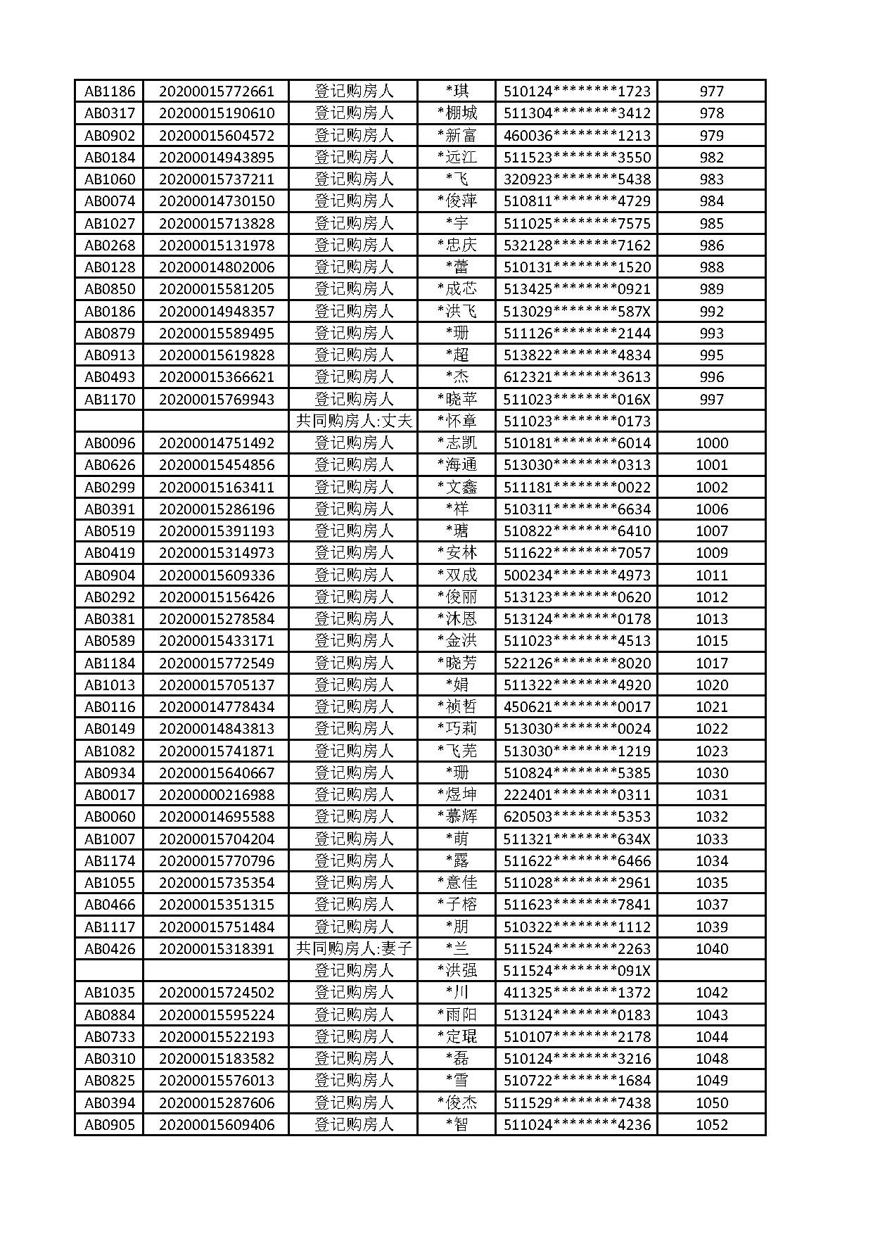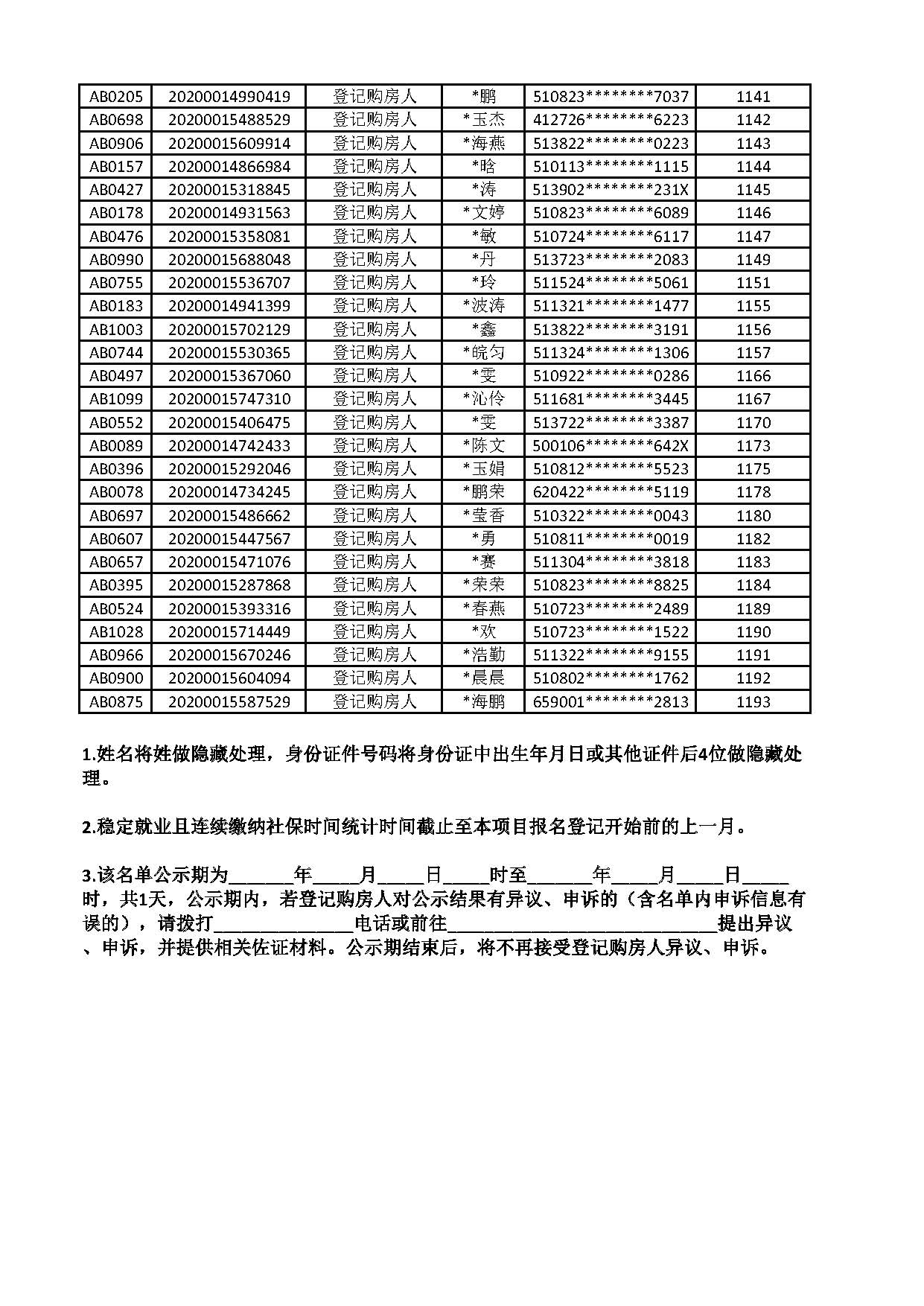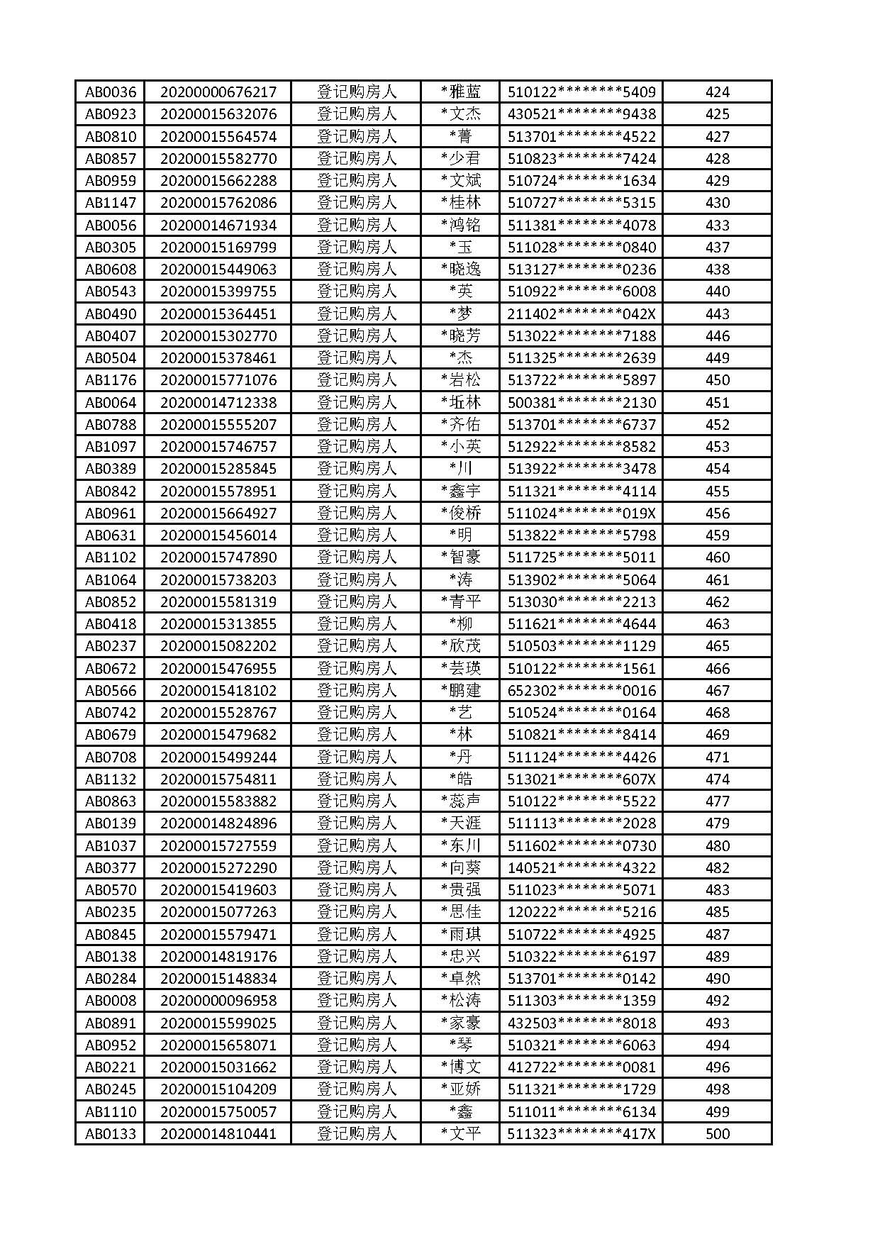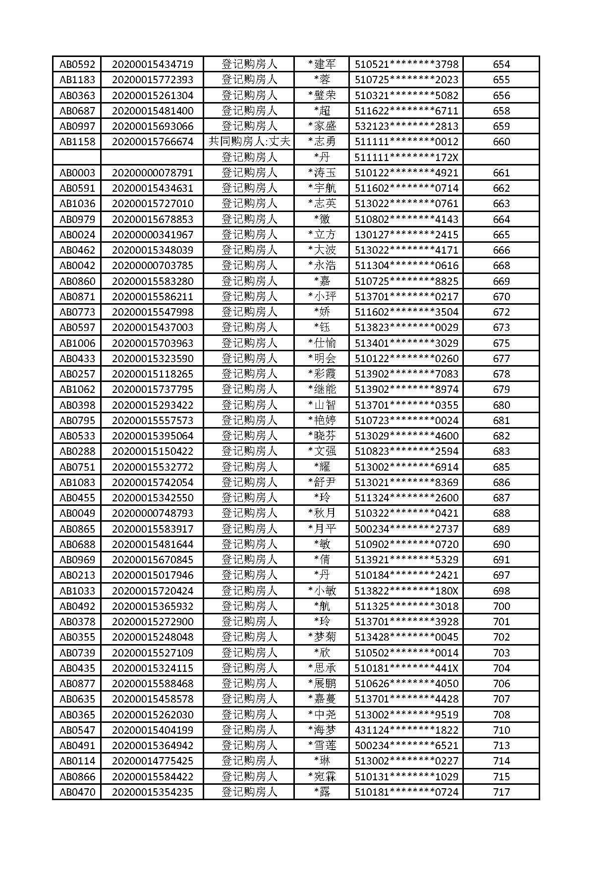 國棟南園貳號 無房居民家庭(含棚改貨幣安置住戶)登記購房人名冊(復核名單)