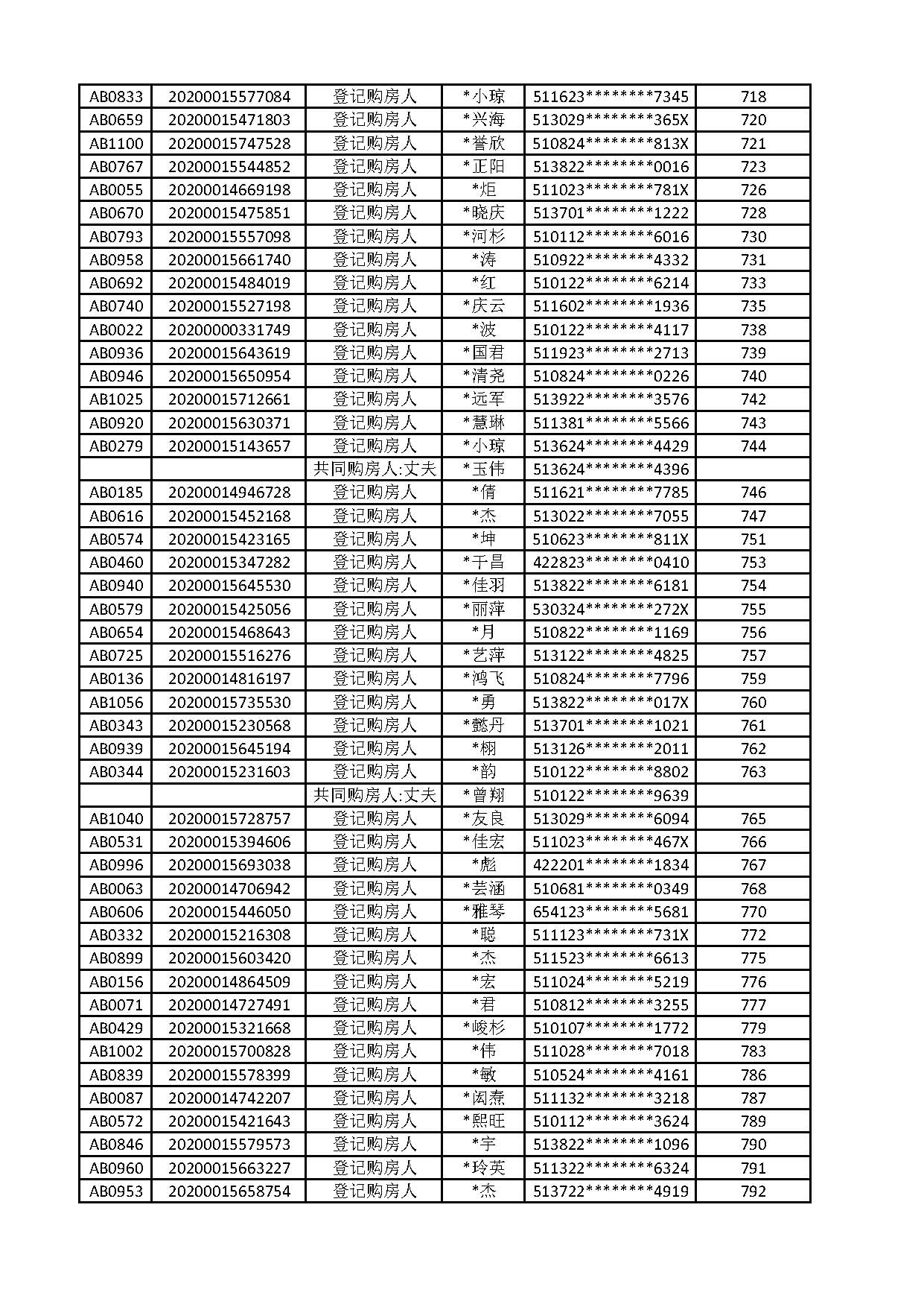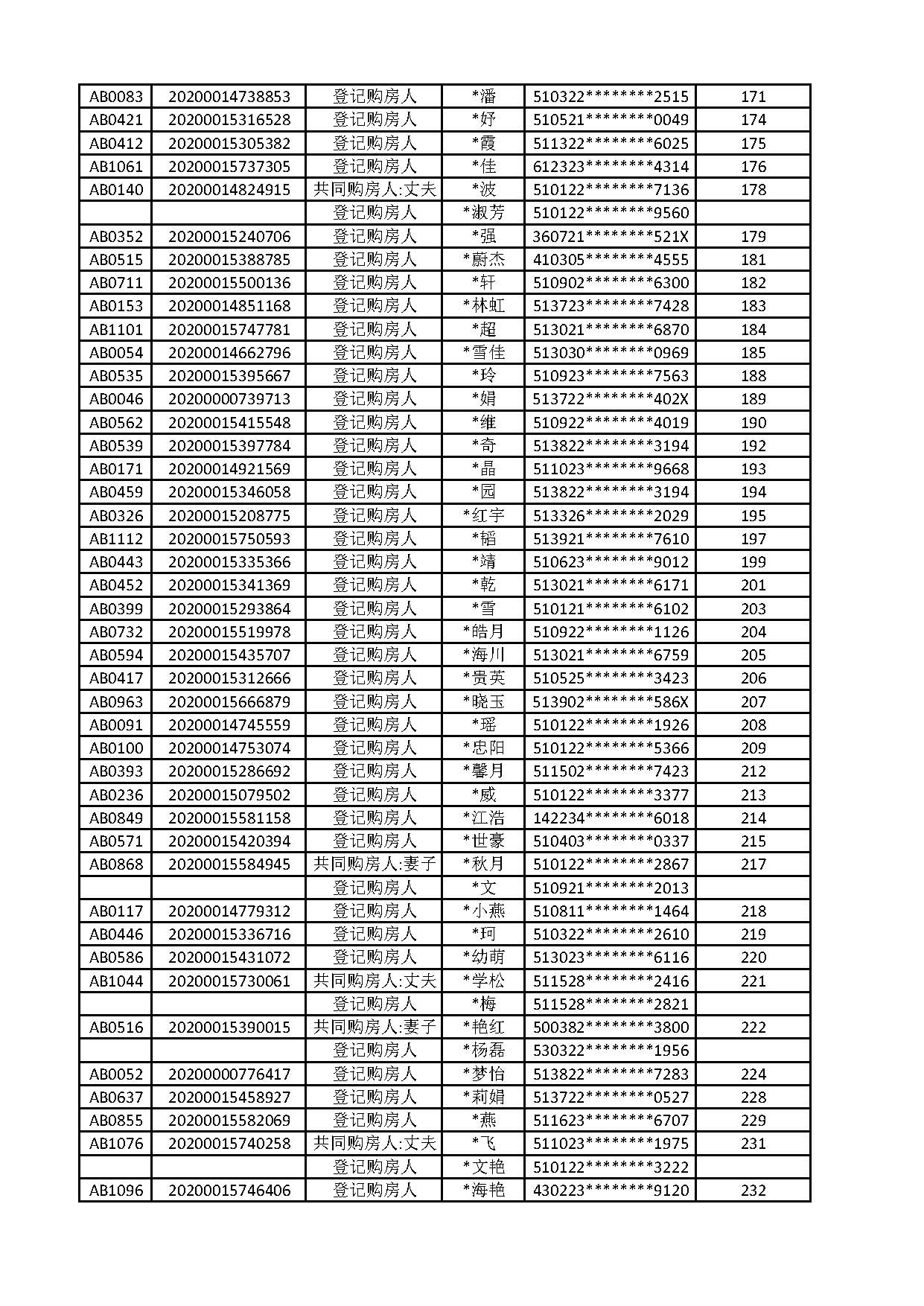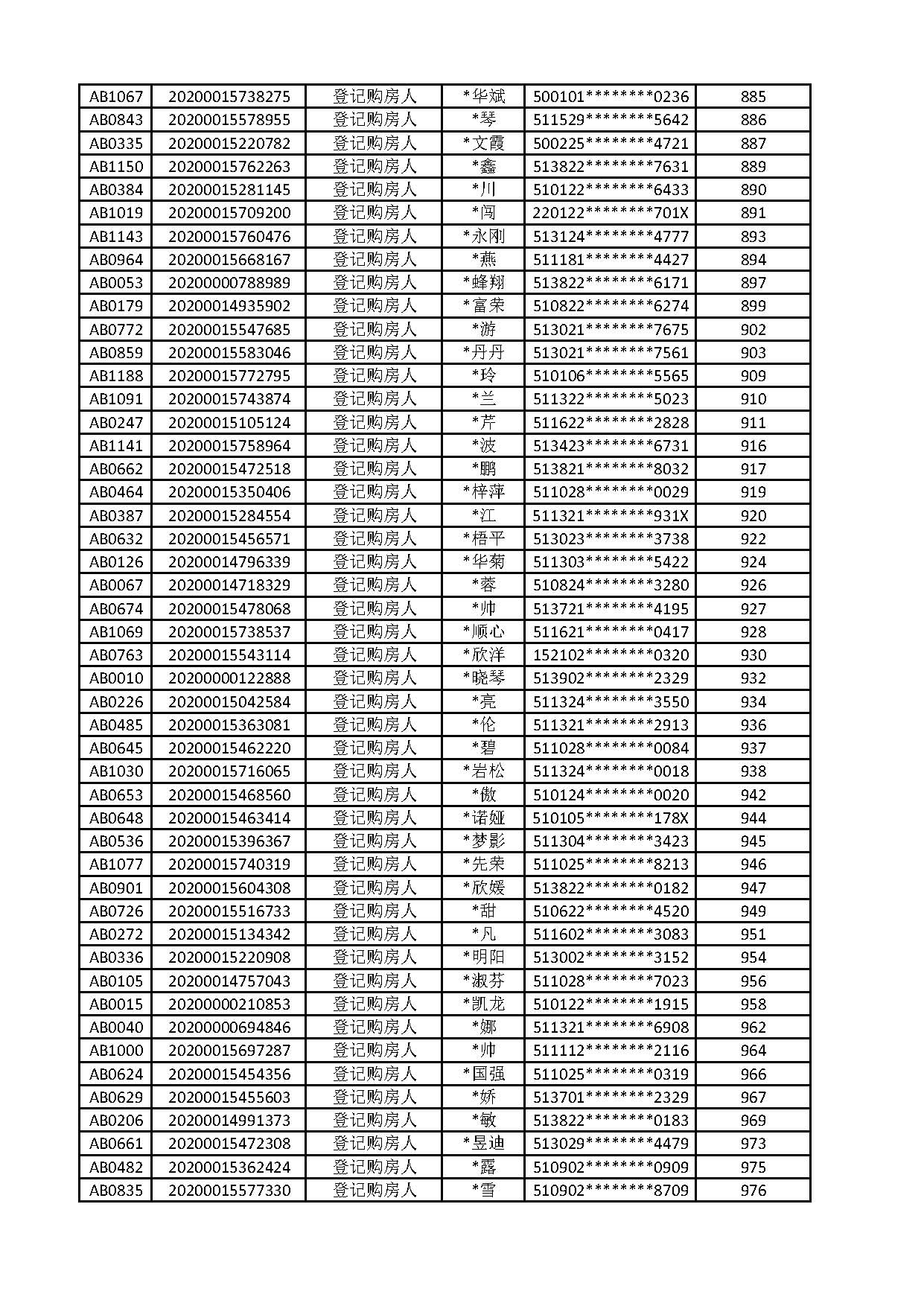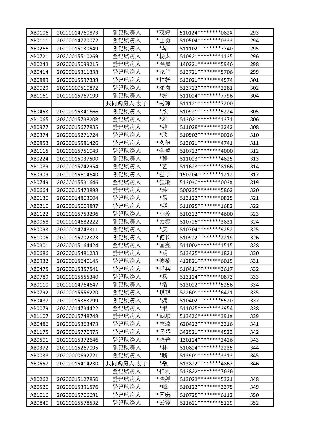 國棟南園貳號 無房居民家庭(含棚改貨幣安置住戶)登記購房人名冊(復核名單)