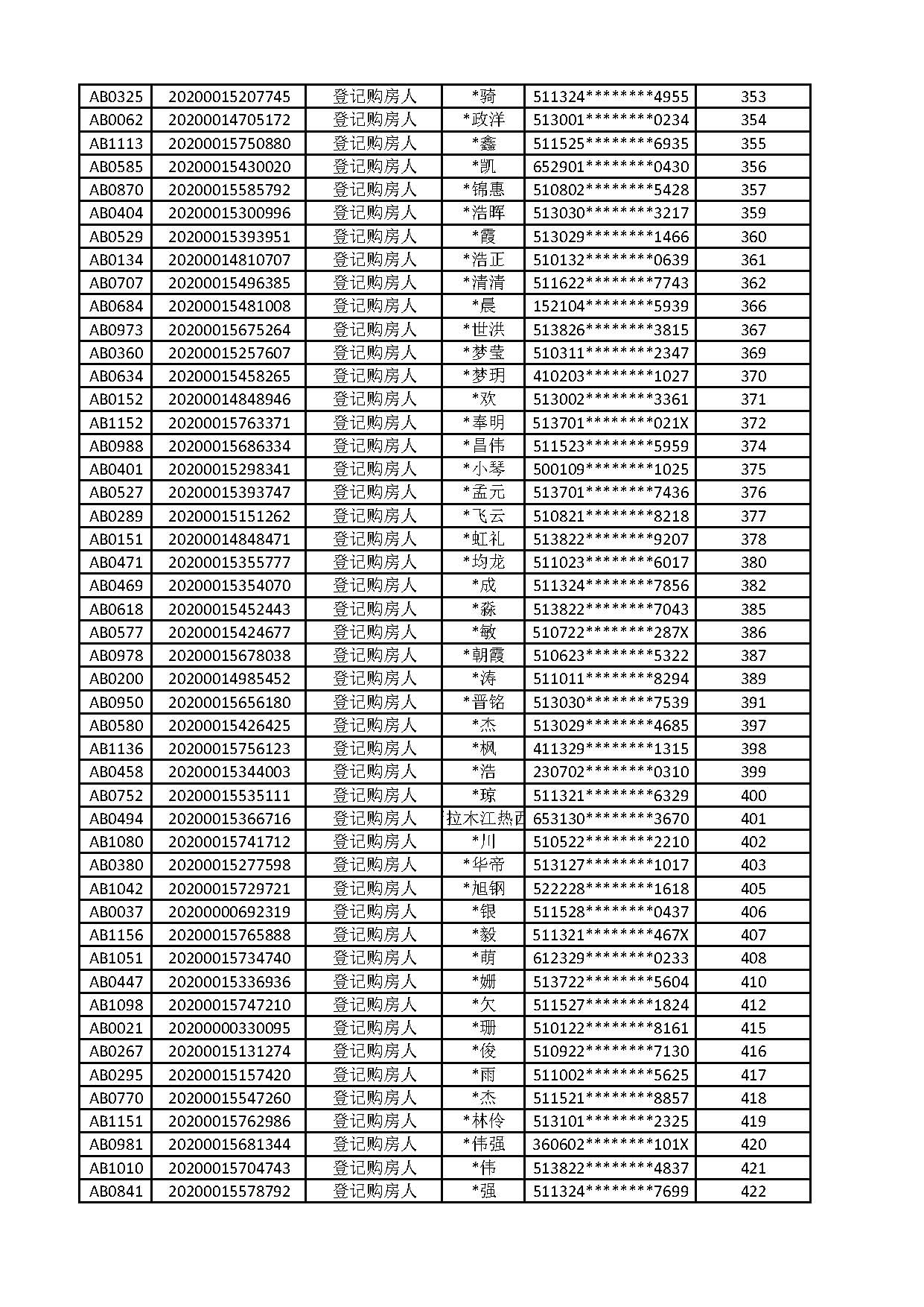 【概要描述】國棟南園貳號 無房居民家庭(含棚改貨幣安置住戶)登記購房人名冊(復核名單)